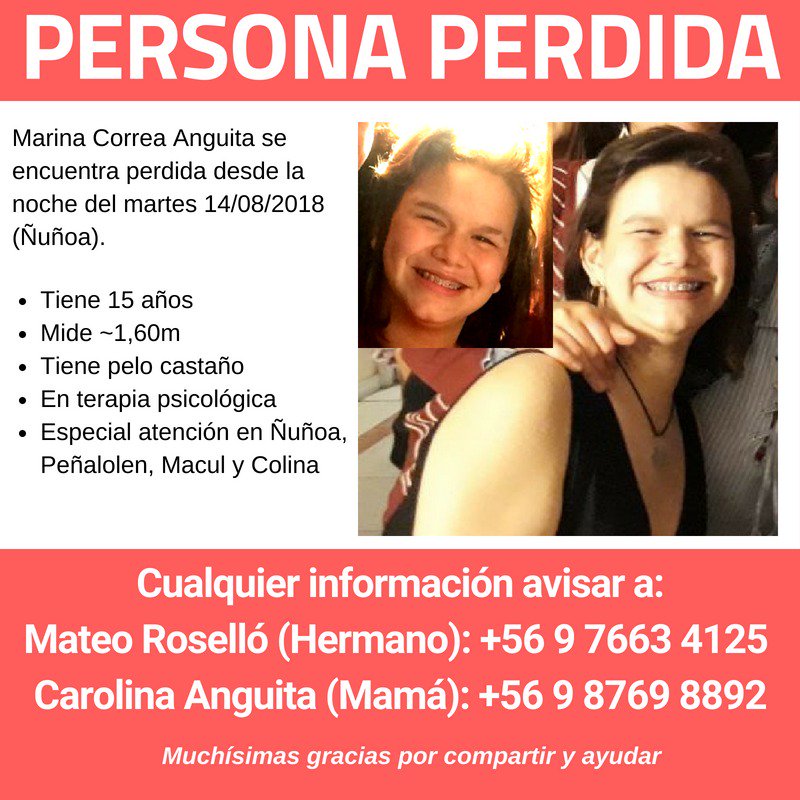 MENOR EXTRAVIADA HACE 5 DIAS¡¡¡ FAVOR AYUDAR HIJA COMPAÑERA DE COLEGIO