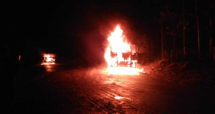 Tres camiones fueron quemados la madrugada de este jueves en el sector Canchas del Topo de Curanilahue en un nuevo atentado incendiario.
